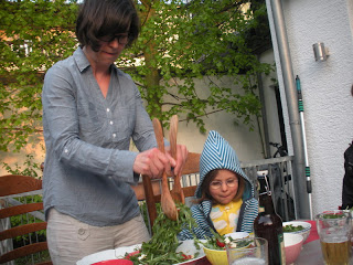 After the race I hobbled around the Altstadt looking for Bob and Michelle. I never saw Michelle on the "other side of the road" as I approached the finish, so I wasn't sure if she had already finished or not. The crowd was pretty compact, so my eyes were scanning every German face to see if they resembled an Andreini. Bob, or Michael, or Matt should be somewhere in this crowd waiting for Michelle to exit the runners area.